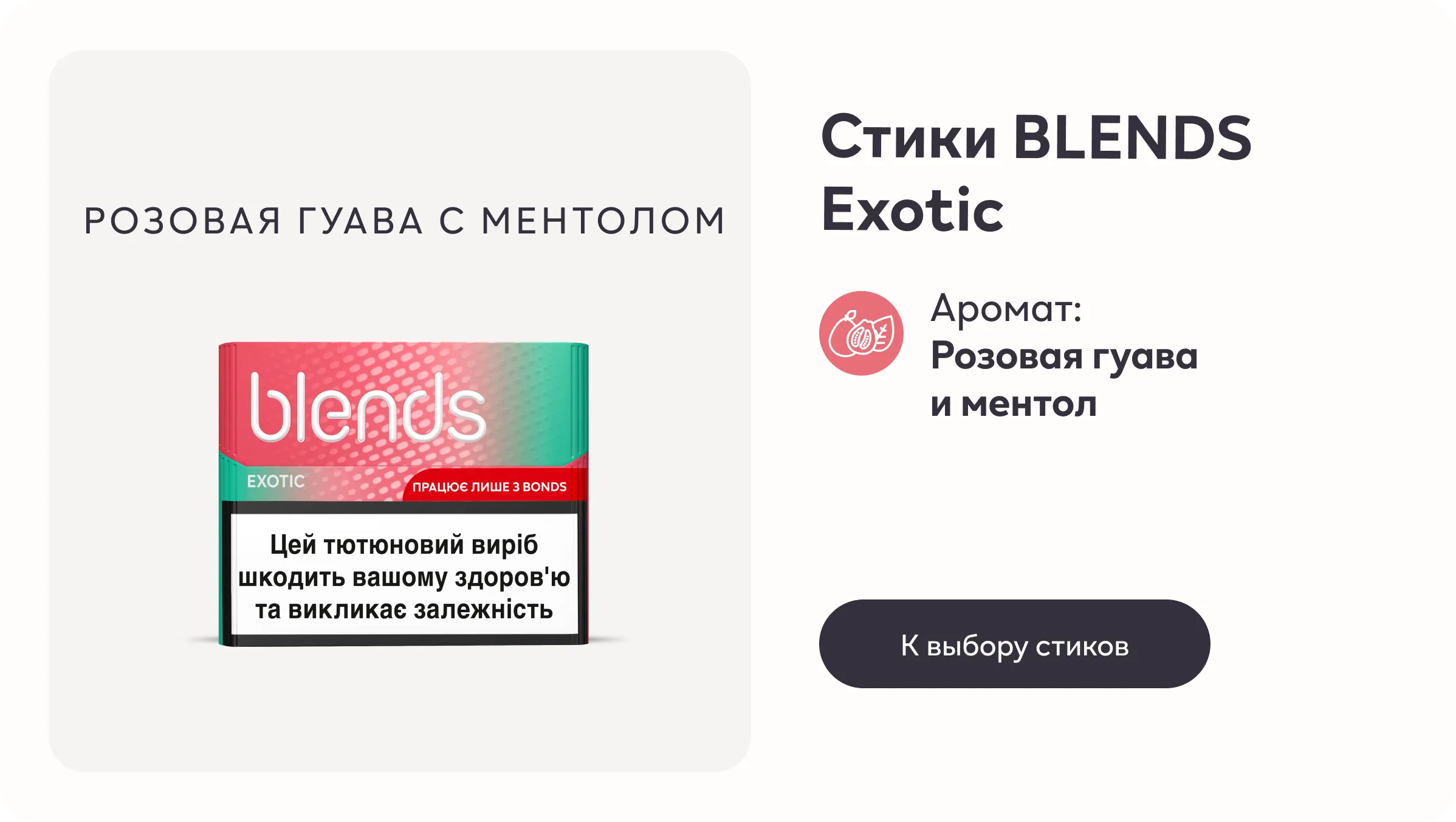 Стики с фруктовыми и свежими ментоловыми ароматами (TEREA Ruby Fuse, TEREA Cameo Wave, DELIA Classic Green Yellow, DELIA Classic Coral, HEETS Purple, HEETS Zing Wave и др.), или стики с капсулами (TEREA Riviera Pearl, TEREA Twilight Pearl, BLENDS Summer CAPS), скорее всего, подойдут тем, кто раньше курил сигареты с капсулами, одноразовые сигареты, электронные сигареты, вейпы, кальян.