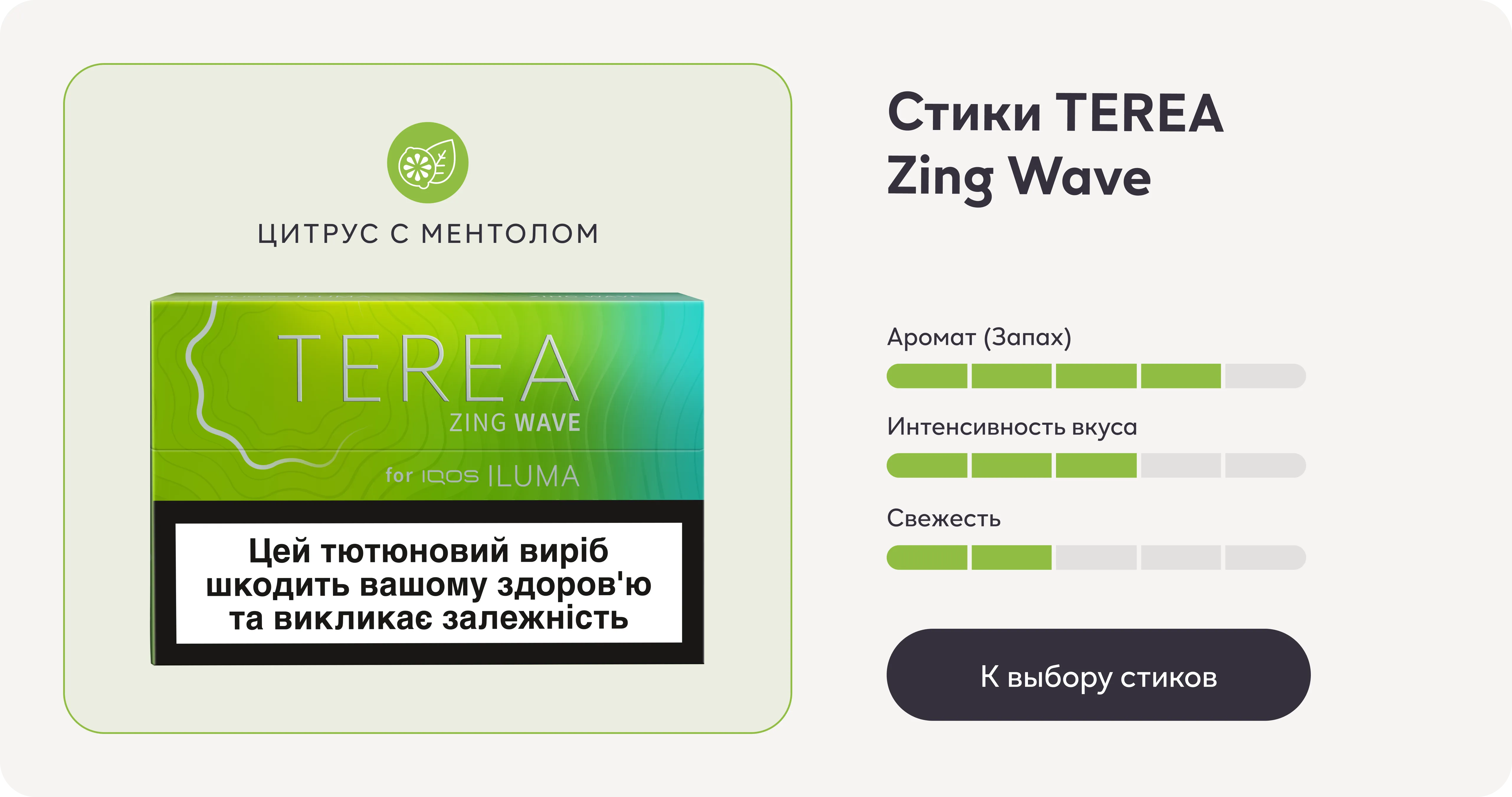 TEREA Zing Wave (Тереа Зинг Вейв) — стики со свежим вкусом цитрусовых и ментола в табачном аэрозоле.