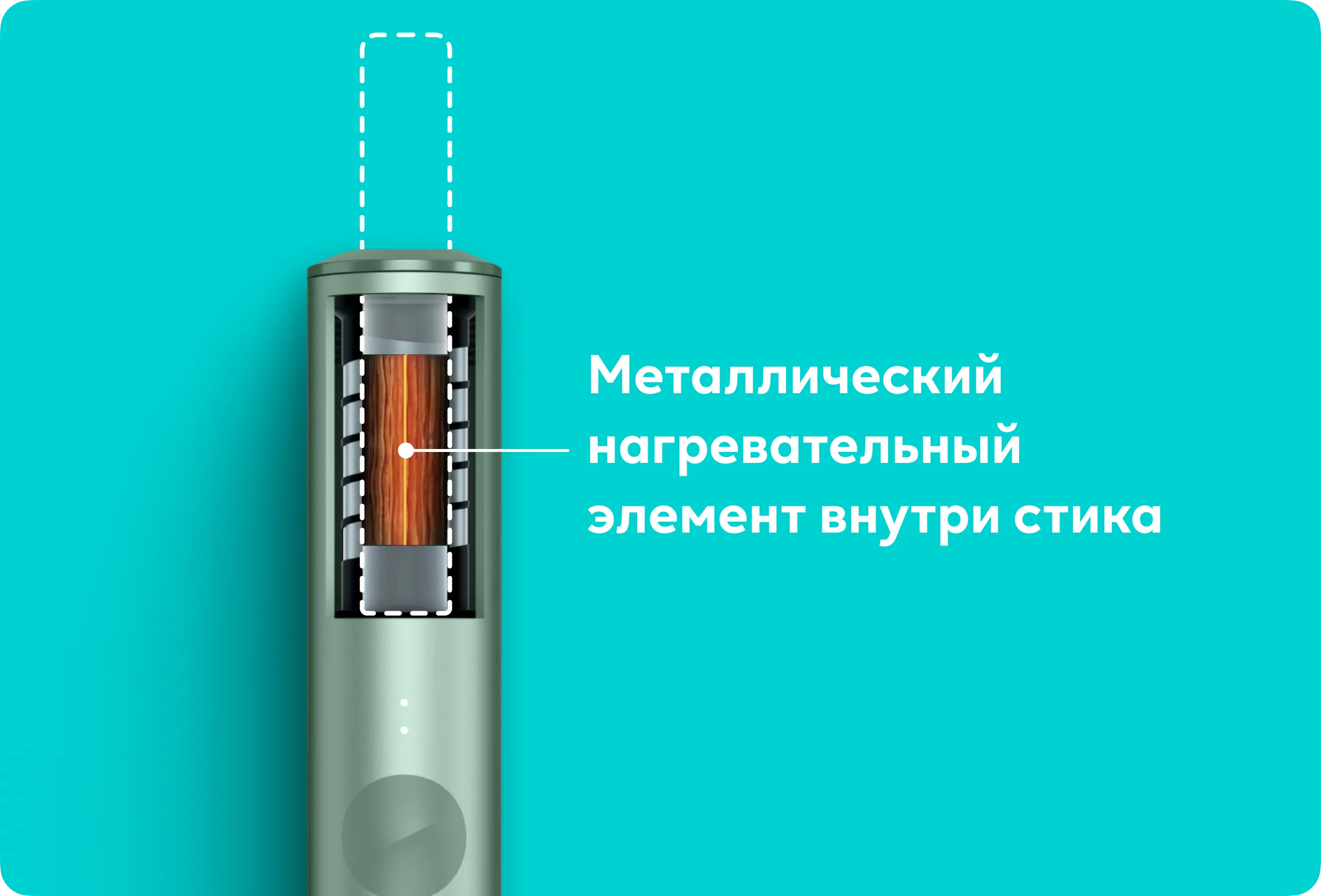 Как же все это работает: держатель имеет внутри спираль, генерирующую электромагнитное поле. Оно разогревает металлическую пластину, которую мы спрятали в стике. А пластина уже нагревает табак до испарения аэрозоля. Так табак не контактирует с нагревательной камерой, поэтому аксессуар не нужно чистить.