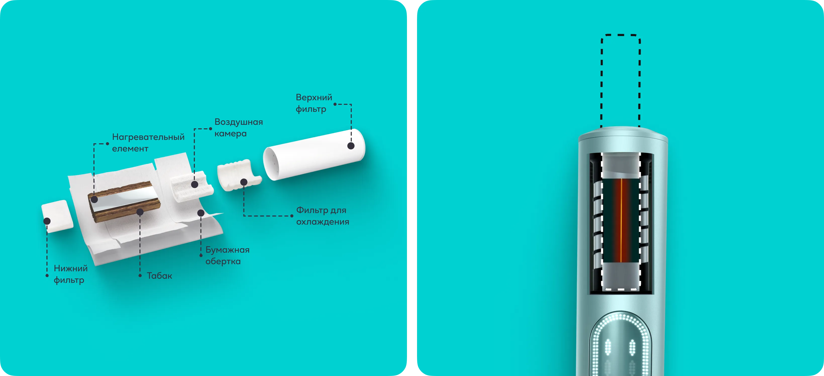 И всё это без лезвия, ведь мы спрятали нагревательный элемент (ту самую пластину) прямо в стик. Так девайс не требует чистки, потому что табак не контактирует с нагревательной камерой.