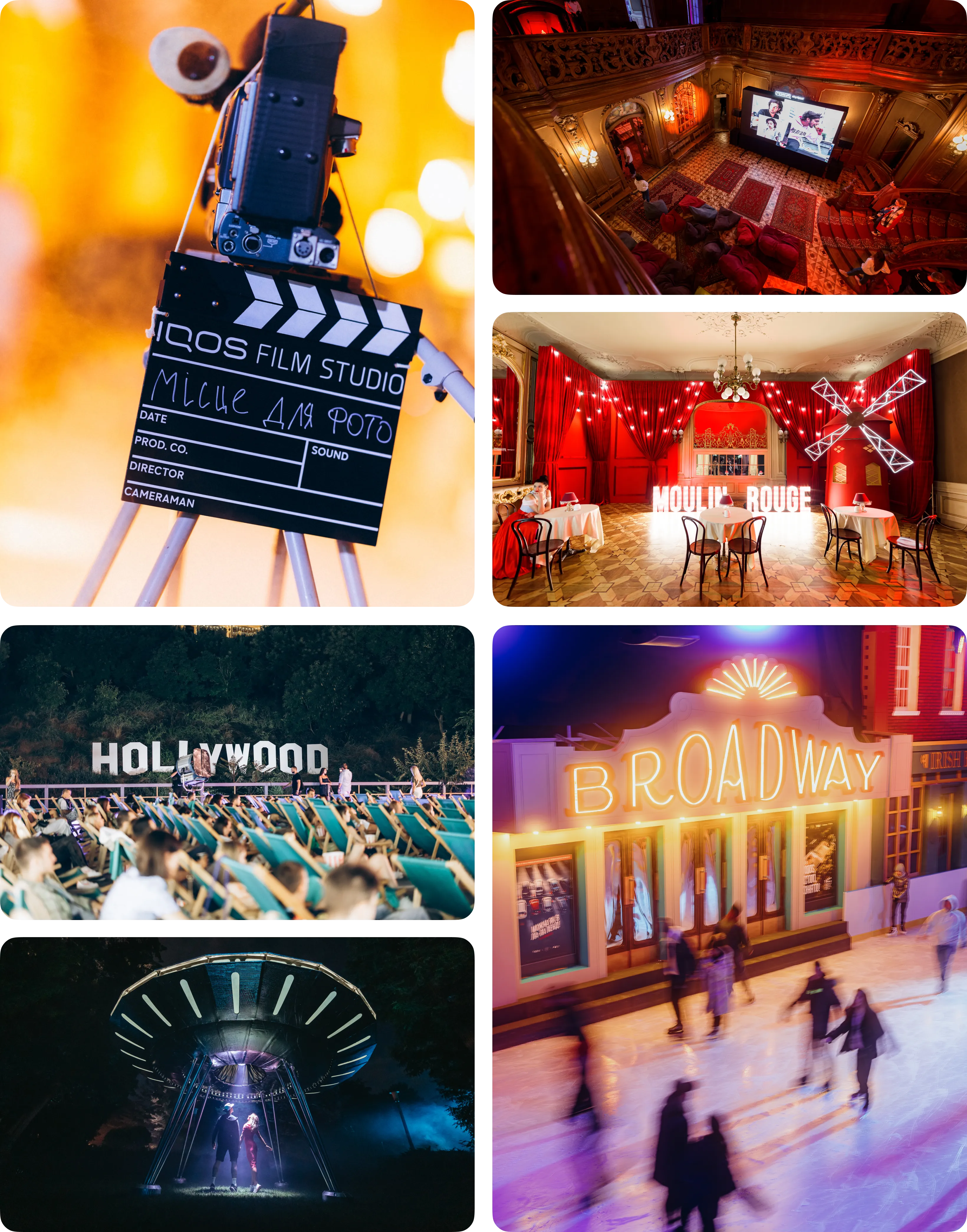 Для чого йти на фестиваль фільмів, якщо можна влаштувати свій власний? Тому у 2021 році пройшов IQOS Film Studio в Одесі. Там був справжній Голлівуд: павільйони, як у фільмах, зйомки, поп-корн та кіно. А ще можна було спуститися сходами, як у будинку Керрі Бредшоу, чи сісти в поліцейську машину, як герой, що не обертається на вибухи.