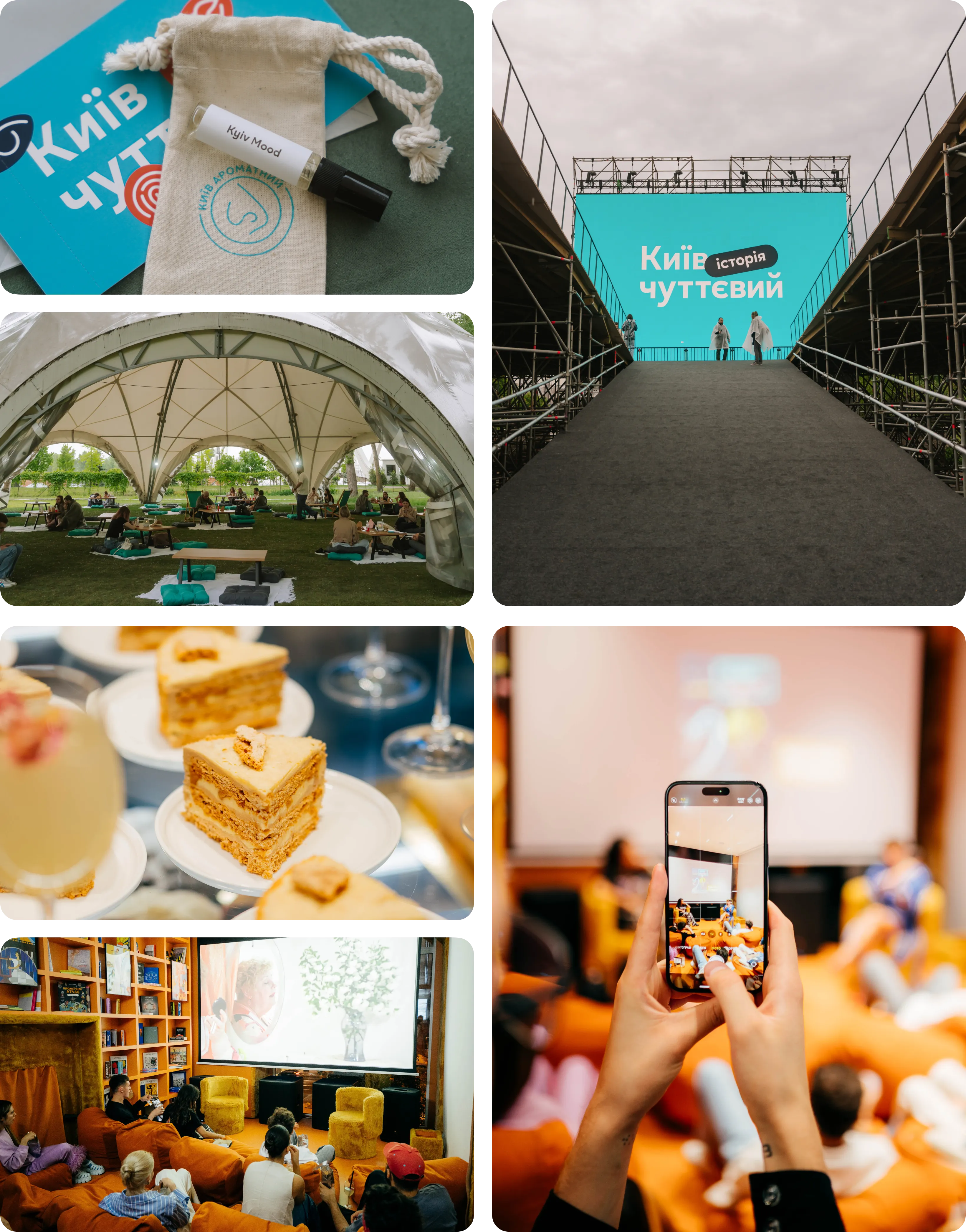 Подія, на якій можна було відчути місто на запах, смак та дотик, почути його ритм та побачити красу. На мапі міста було 5 точок, де відвідувачі знайомилися з Києвом по-новому. У Кафе «Марія» їли морозиво, у готелі «Воздвиженський» обирали особливий аромат міста, а у гольф-клуб «Оболонь» слухали тишу на величезному пікніку.