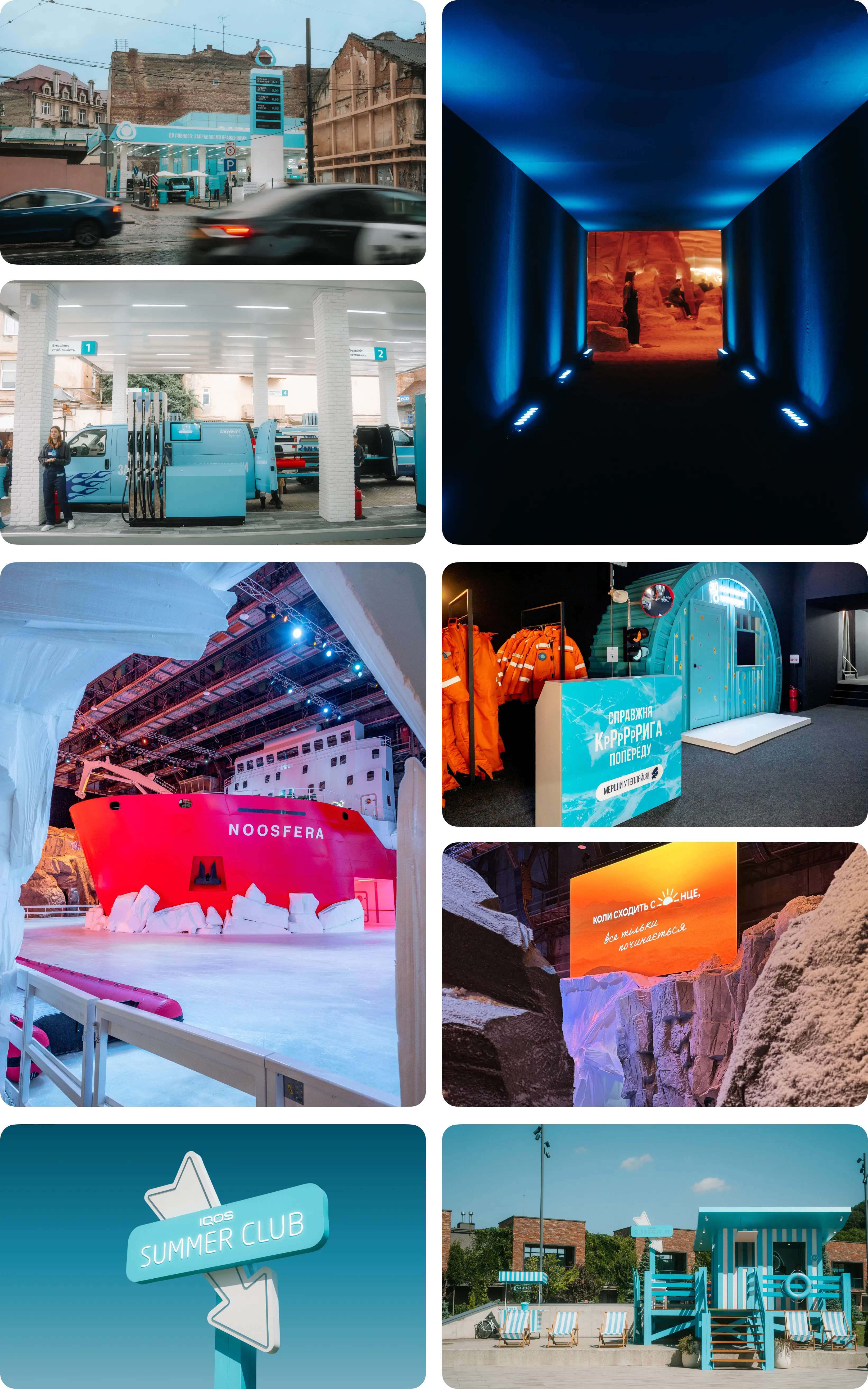 Поп-ап у стилі Антарктиди. Тут можна було ознайомитися і придбати з нову лінійку девайсів IQOS ILUMA i. Усе починалося з імітованого світанку при вході, а далі відкривався новий світ. Крижані печери, найпівденніший бар у світі, коктейлі у келиху з льоду та величезна ковзанка навколо криголама «Ноосфера». На локації можна було відчути себе справжнім полярником у кімнаті, де температура опустилася до -14°C. А потім зігрітися із пледом на палубі корабля, поки дивишся фільм на великому екрані.