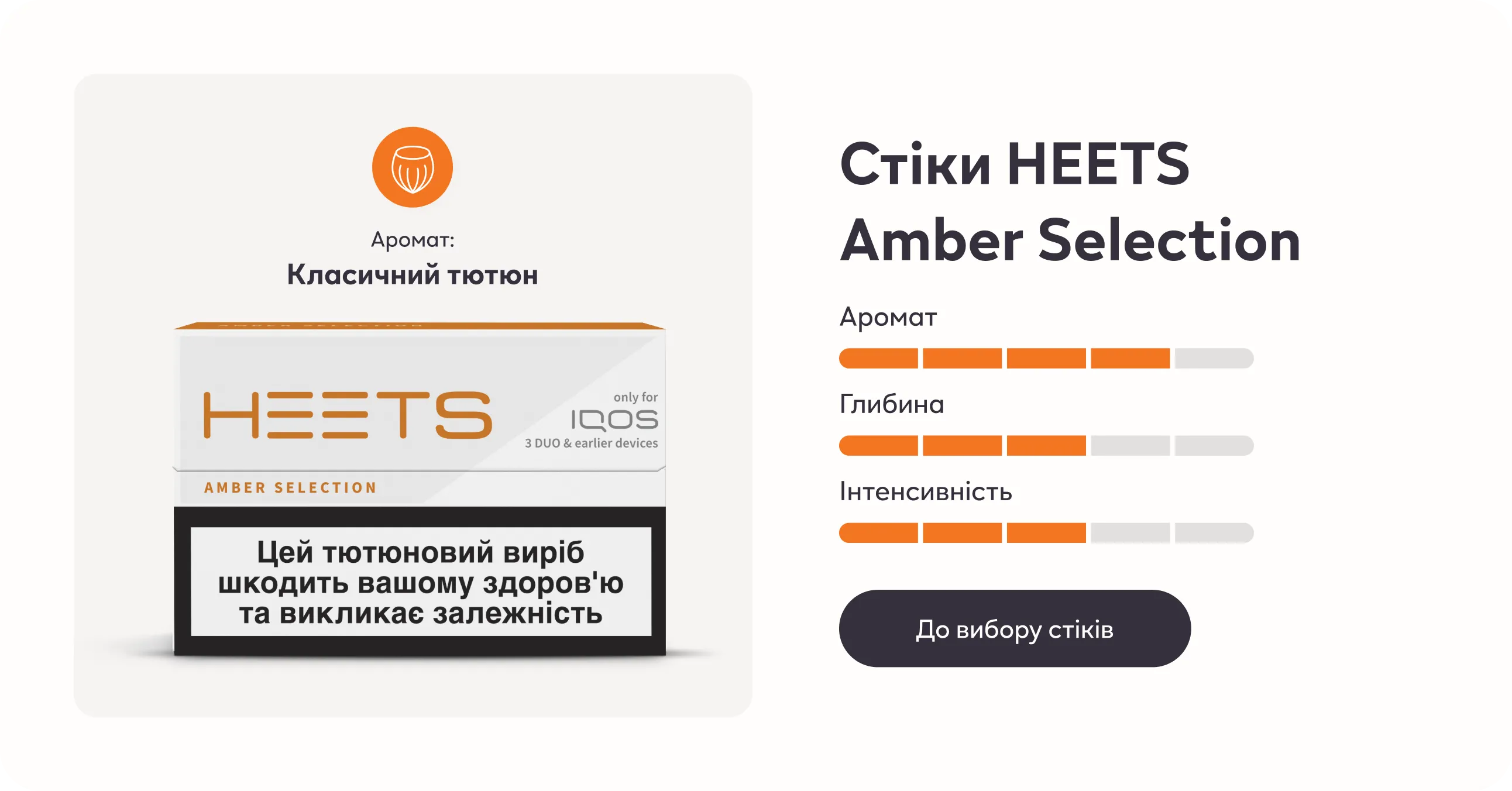 HEETS Amber (Хітс Амбер) – класичний тютюн з легкими горіховими нотками.