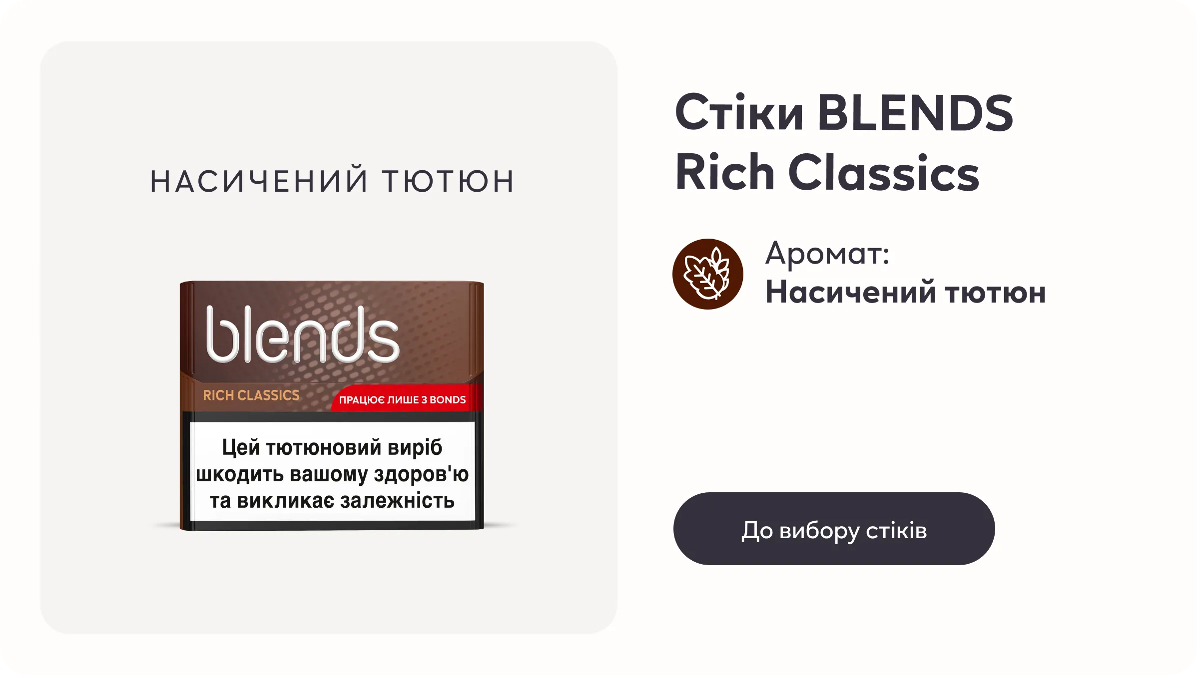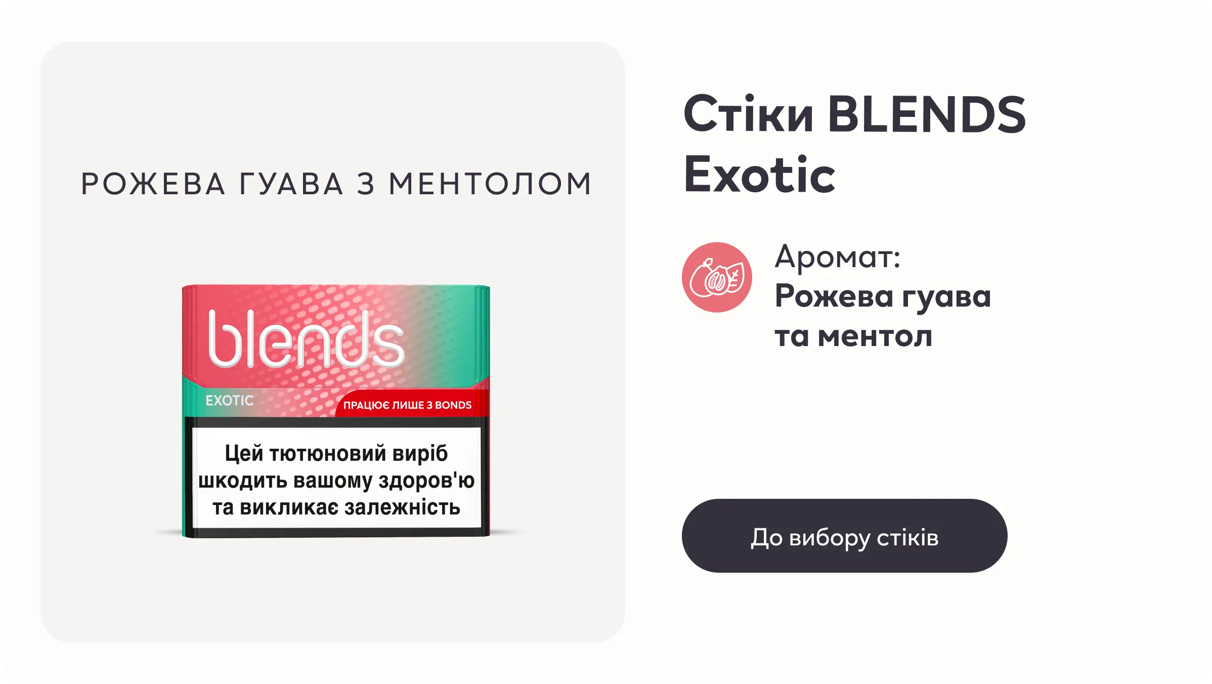 Стіки з фруктовими і свіжими ментоловим ароматами (TEREA Ruby Fuse, TEREA Cameo Wave, DELIA Classic Green Yellow, DELIA Classic Coral, HEETS Purple, HEETS Zing Wave та ін), або стіки з капсулами (TEREA Riviera Pearl, TEREA Twilight Pearl, BLENDS Summer CAPS), ймовірніше, підійдуть тим, хто раніше курив сигарети з капсулами, одноразки, електронні сигарети, вейпи, кальян.