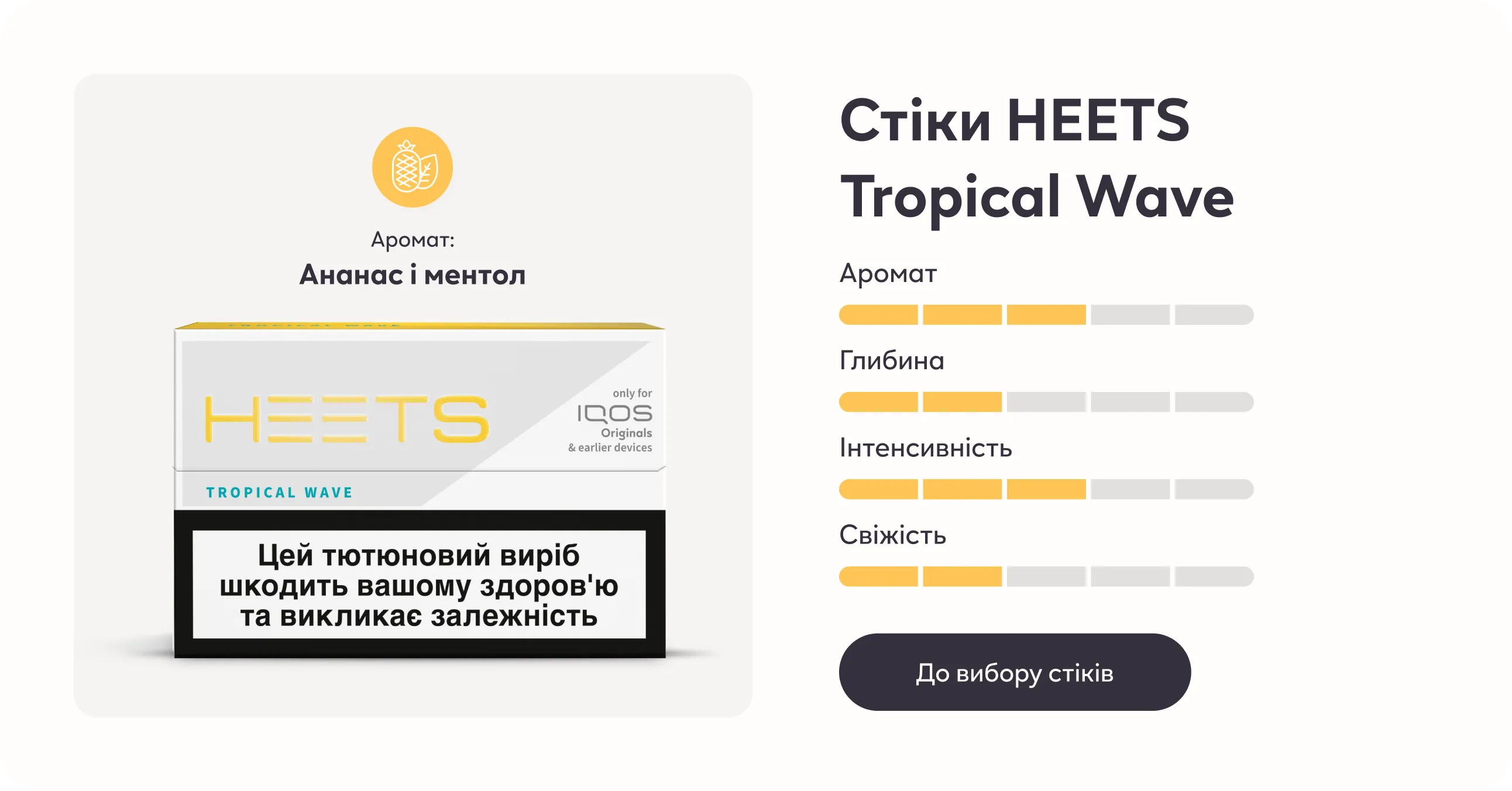 P.S. Стіки HEETS Tropical Wave – це ті самі HEETS Tropical Swift. Ми просто оновили назву, смак залишився без змін.