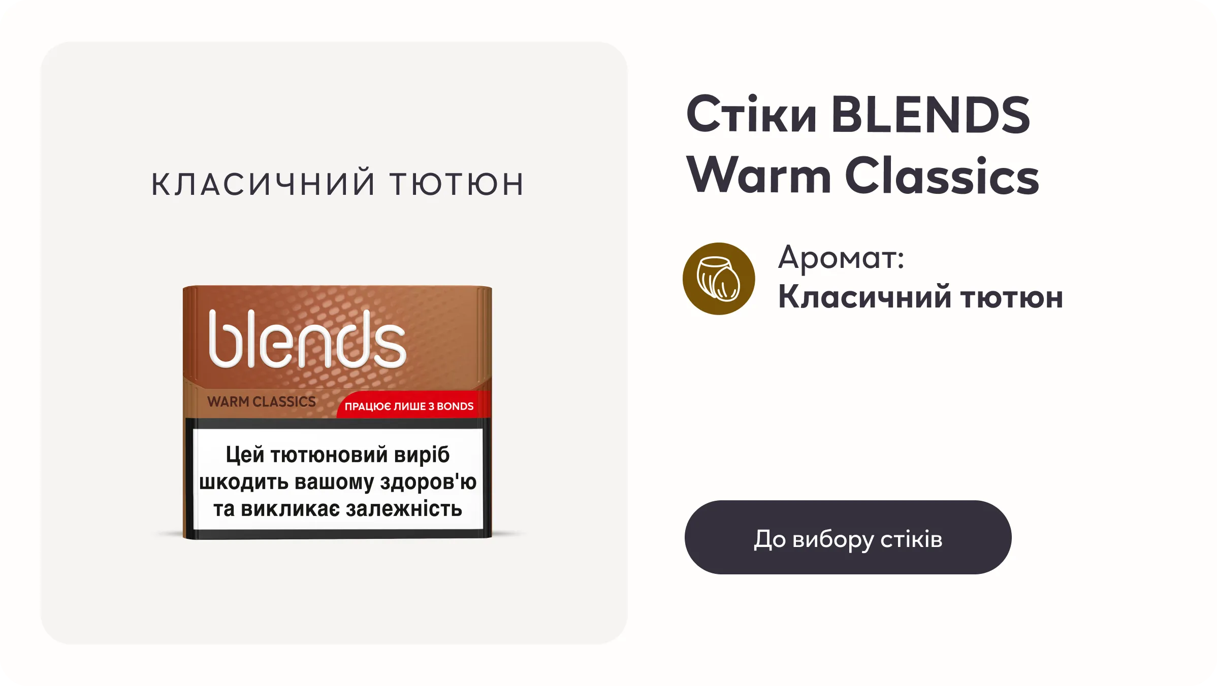 Стіки з тютюновими ароматами (TEREA Amber, DELIA Classic Gold, HEETS Bronze, BLENDS Warm Classics та ін) ймовірніше, підійдуть тим, хто до переходу на Айкос курив звичайні не ароматизовані сигарети без капсул або електронні сигарети з тютюновими смаками. Вони різняться між собою міцністю і смаковими нотами, тому серед них можна знайти заміну сигаретам.