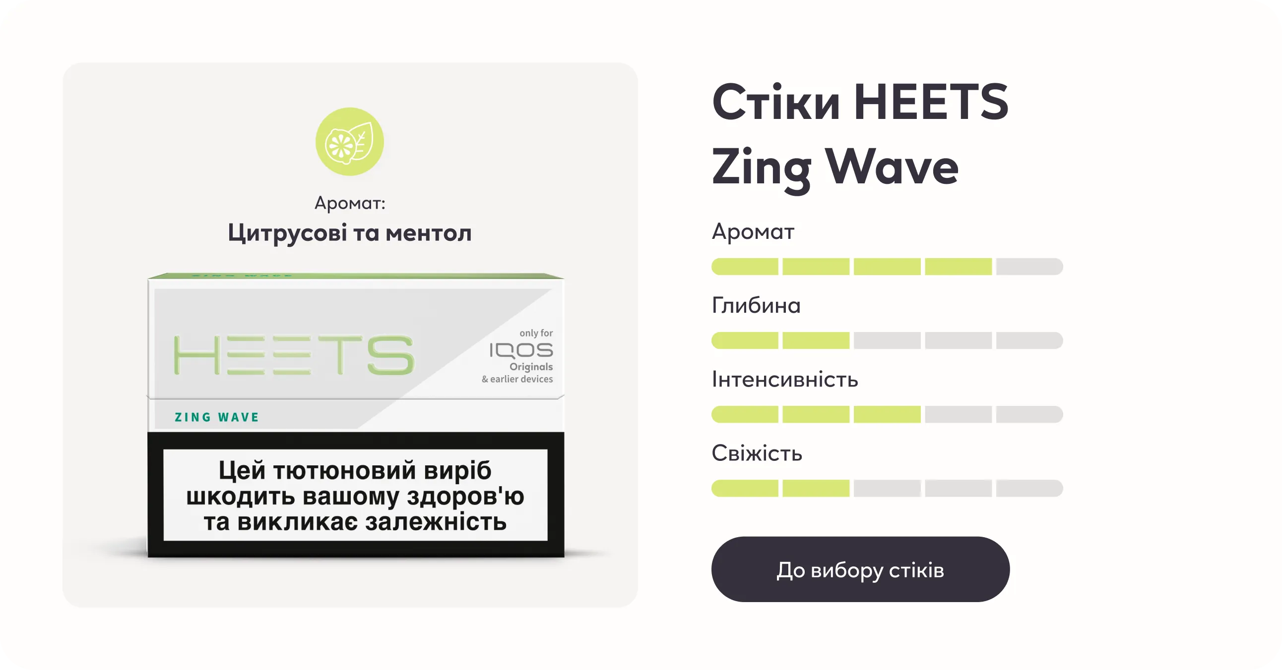 P.S. Стіки HEETS Zing Wave – це ті самі HEETS Green Zing. Ми просто оновили назву, смак залишився без змін.