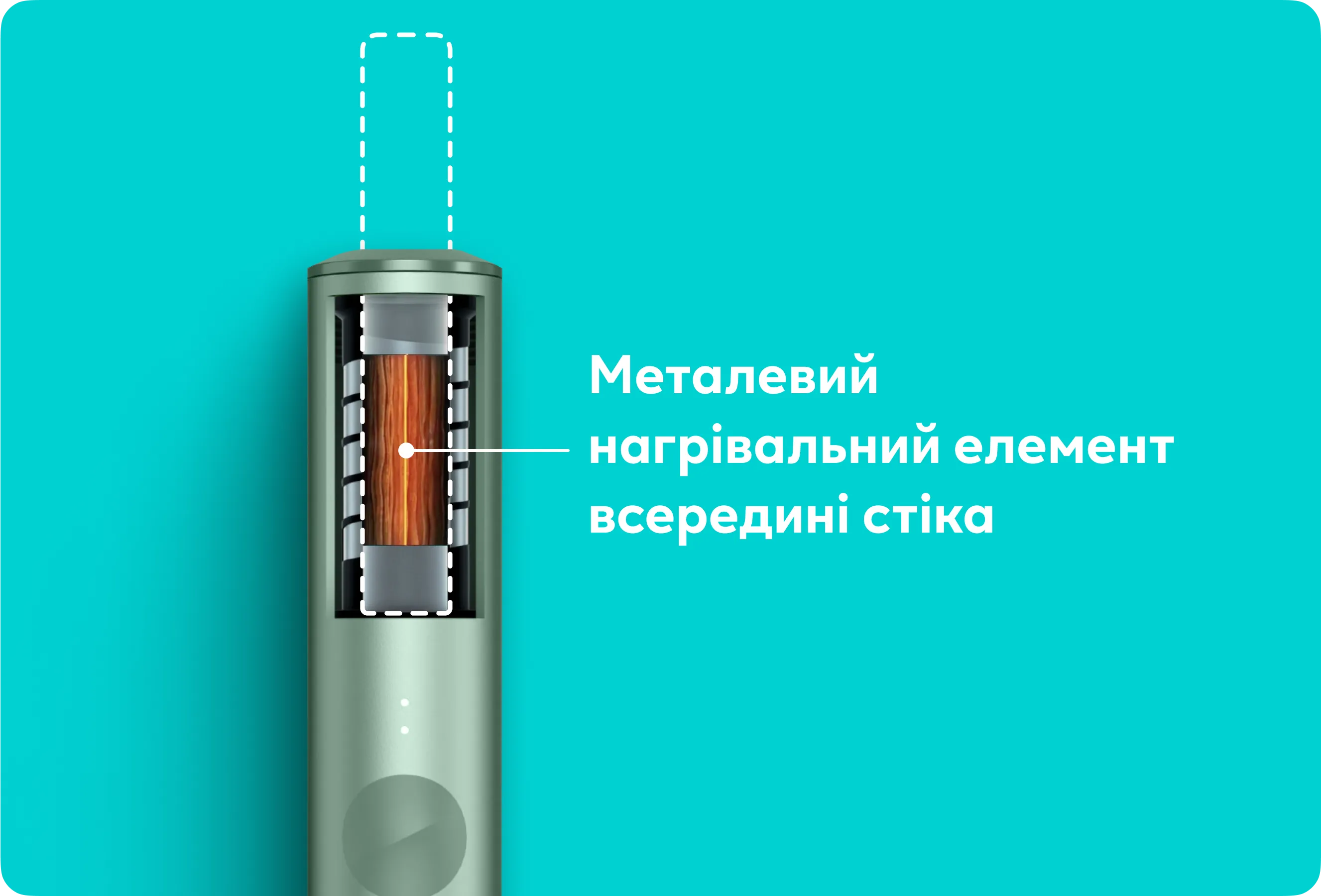 То як же усе працює: тримач має всередині спіраль, що генерує електромагнітне поле. Воно розігріває металеву пластину, яку ми заховали у стіку. А пластина вже нагріває тютюн до випаровування аерозолю. Так тютюн не контактує з нагрівальною камерою, тому девайс не потрібно чистити.