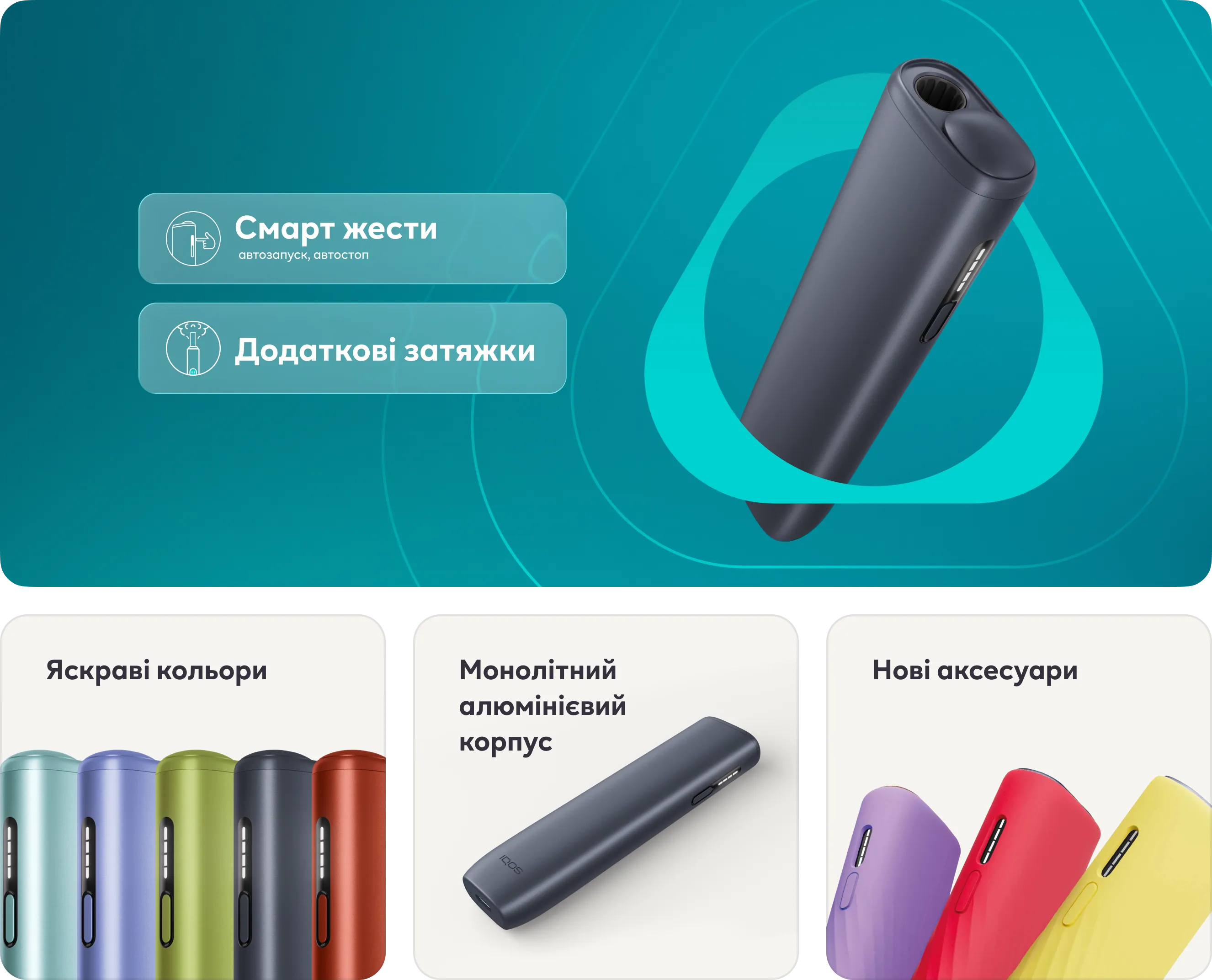 2. Матеріал. Алюміній чи пластик? І один, і другий матеріал міцні та надійні. Але якщо більше подобається софт-тач відчуття пластику, обирай IQOS ILUMA i. Хочеться цілковитого алюмінію — твій варіант IQOS ILUMA i ONE. А якщо до відчуттів та вираження себе хочеться додати ще матеріалів, ідеальним буде IQOS ILUMA і PRIME.
